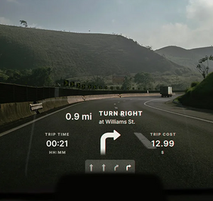 Projette votre itinéraire, flèches directionnelles, temps de trajet et heure d'arrivée. Affiche les informations même si l’OBD n’est pas utilisé.